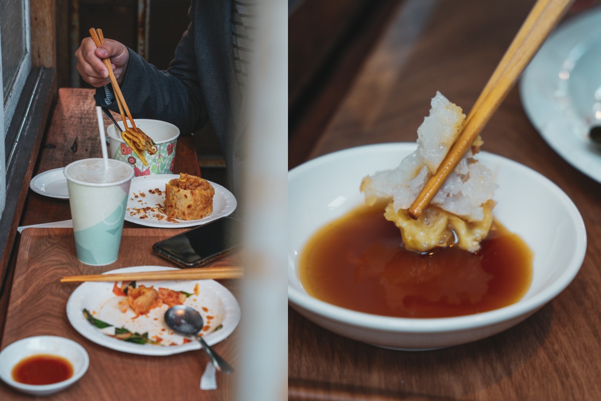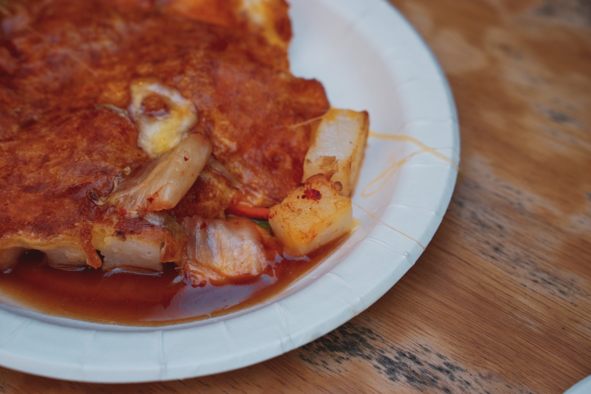 泡菜蘿蔔糕是平日限定的口味,煎到脆脆的蘿蔔糕,搭配雙色起司與韓式泡菜還有店家的特製辣椒,香氣十足,越吃越涮嘴,一吃停不下來,我自己就快速掃盤,好喜歡!推薦大家可以試試看。