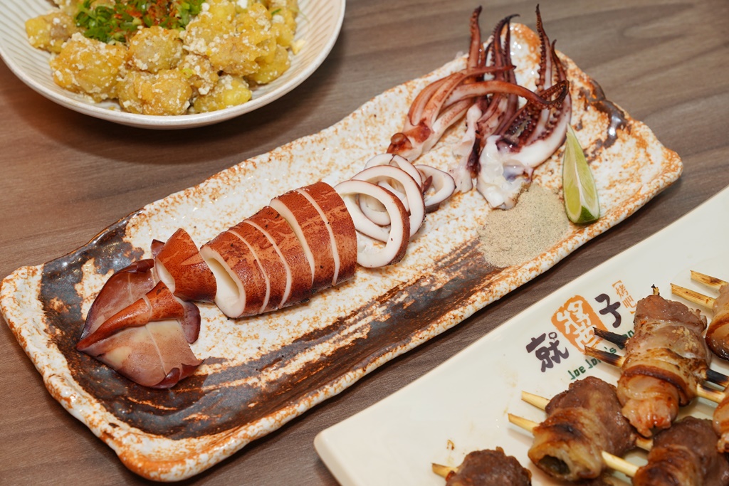 來到就醬子烤吧一定要點他們的經典串燒,烤的色澤很漂亮,可見火候控制得蠻好。豆包外皮酥脆、內心柔軟,富有層次感,我蠻喜歡的;牛肉串燒表現中規中矩,搭配四季豆有加分;培根鳳梨很符合時事(笑),培根口感偏厚,覺得鳳梨可切大塊一點均衡一下;雞腿串還不錯,喜歡搭櫛瓜吃起來爽口不油膩;甜不辣基本必點,就算冷掉也不會變乾硬,而且沒有腥味,整體口味都不會太重,不過建議串燒類要趁熱享用,冷掉口感難免會跑掉唷~