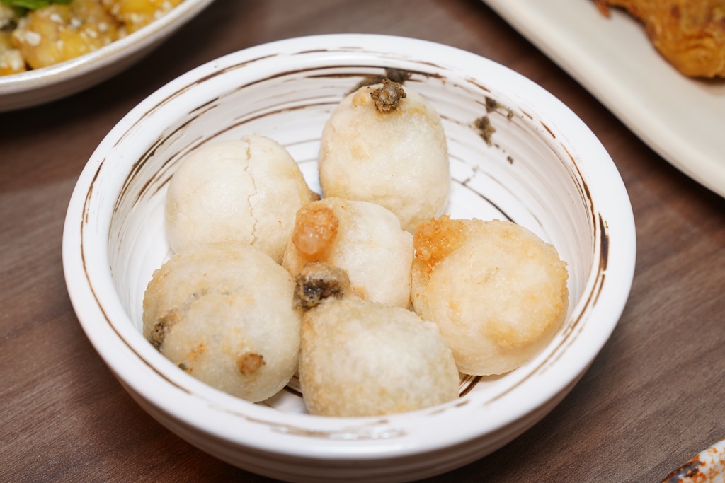 我超愛金沙的味道,比較常吃金沙美人腿、金沙豆腐之類的,倒是第一次吃到搭配龍珠的組合,金沙的香氣完整包覆彈牙的龍珠,每一口都帶勁,這道口味也是偏重,建議當下酒菜,或是記得點個飲料配唷!