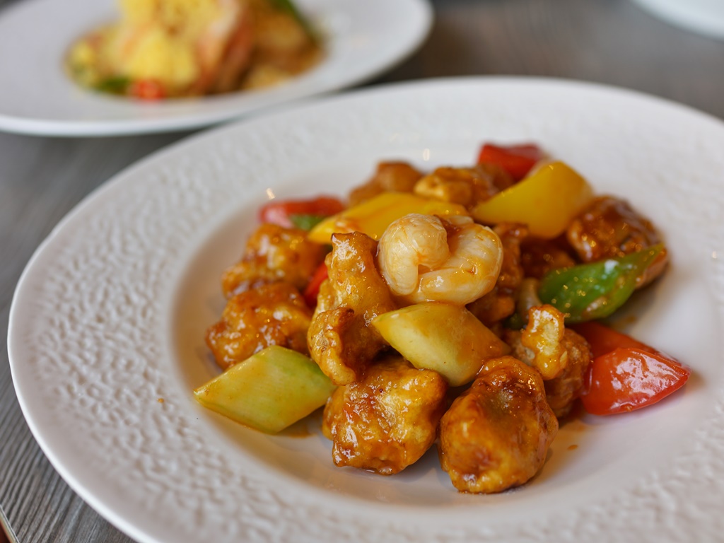 這道是我最喜歡的,選用豬梅花肉,肉質很嫩帶點彈性,類似糖醋肉的作法,搭配荔枝肉,有點酸酸甜甜的很開胃!