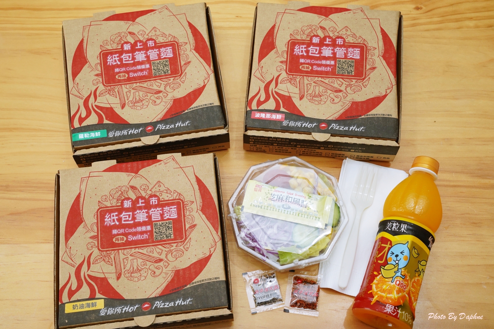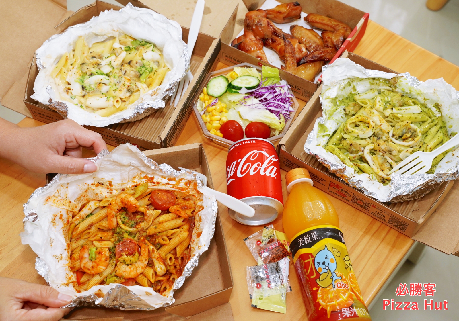 在前一間公司上班時,公司附近有一家必勝客,當時的老闆常常在下午工作時肚子餓,交代 Daphne 訂外送,最常吃訂的是披薩與炸物拼盤,但是他們可不是多人聚餐才可以訂,一人的份量也有專屬套餐,像這次必勝客一口氣推出三種口味的海鮮紙包筆管麵:波隆那海鮮紙包筆管麵、奶油海鮮紙包筆管麵、羅勒海鮮紙包筆管麵,單點只要 189 起,加上套餐 250 有找,對我們這種平常在家工作的自由工作者真的非常友善,不出門也能吃到如餐廳一樣現煮的熱呼呼餐點。