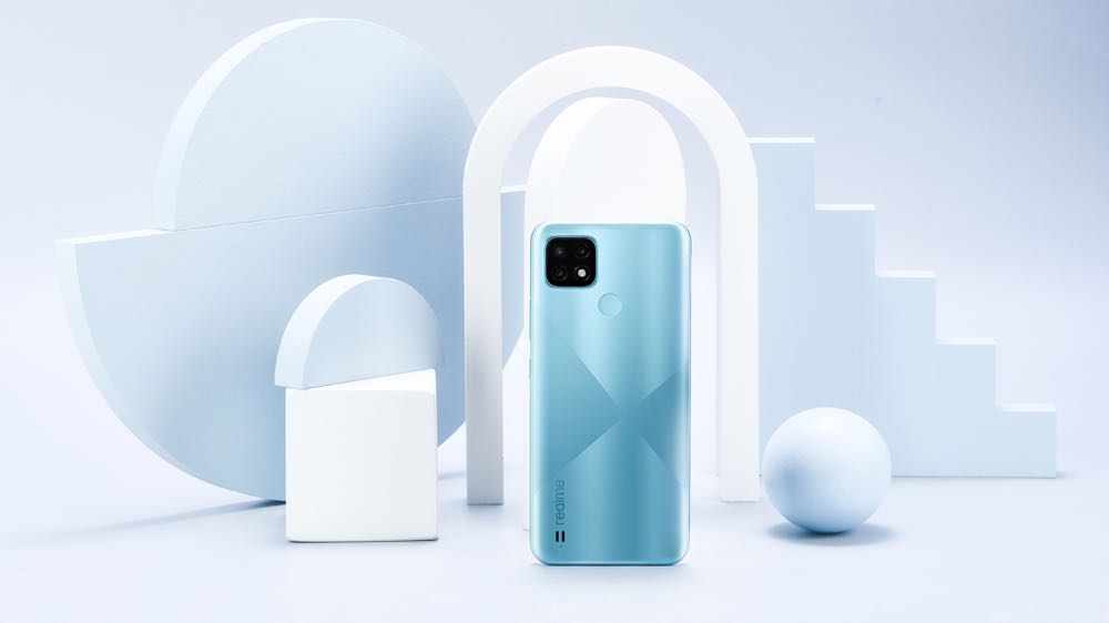 realme C21 推出菱格藍與菱格黑雙色,搭載 4+64GB 記憶體,售價 $3,990 元。