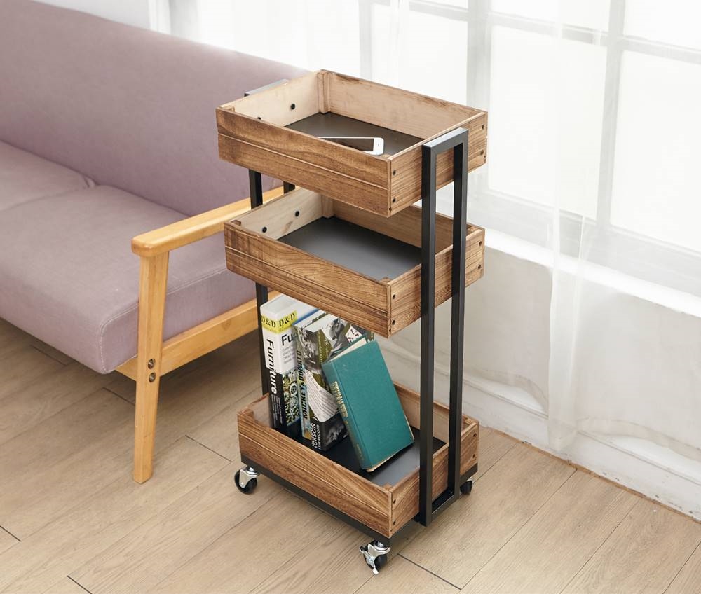 完美融入你的 LOFT 工業風客廳 實木收納推車