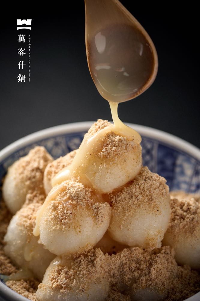 為了歡慶台北八德門市開幕,萬客什鍋為台北門市推出限定甜點「雲朵白糖粿」,創火鍋店之先引入台式解饞小點,靈感來自庶民甜點白糖粿,也是七夕祭拜七星娘娘應景食品。一般白糖粿形狀多為條狀,而萬客「雲朵白糖粿」以糯米做成米糰再油炸,經改良呈現圓雲朵狀,炸後加上花生糖粉及煉乳,入口Q彈甜蜜,越吃越涮嘴。