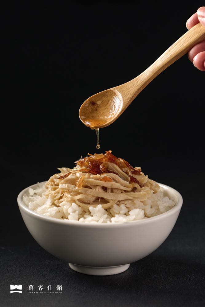 萬客什鍋以台菜入味為宗旨,連附餐也要道地正宗,一直以來備受消費者青睞。全新「銷魂舒肥雞肉飯」以嘉義著名火雞肉飯為發想,選用舒肥雞腿肉替代火雞肉,為古早味加入了時下創新食材,雞腿肉經過舒肥烹調料理,口感鮮嫩多汁,淋上古早味醬油及油蔥,相當對味。