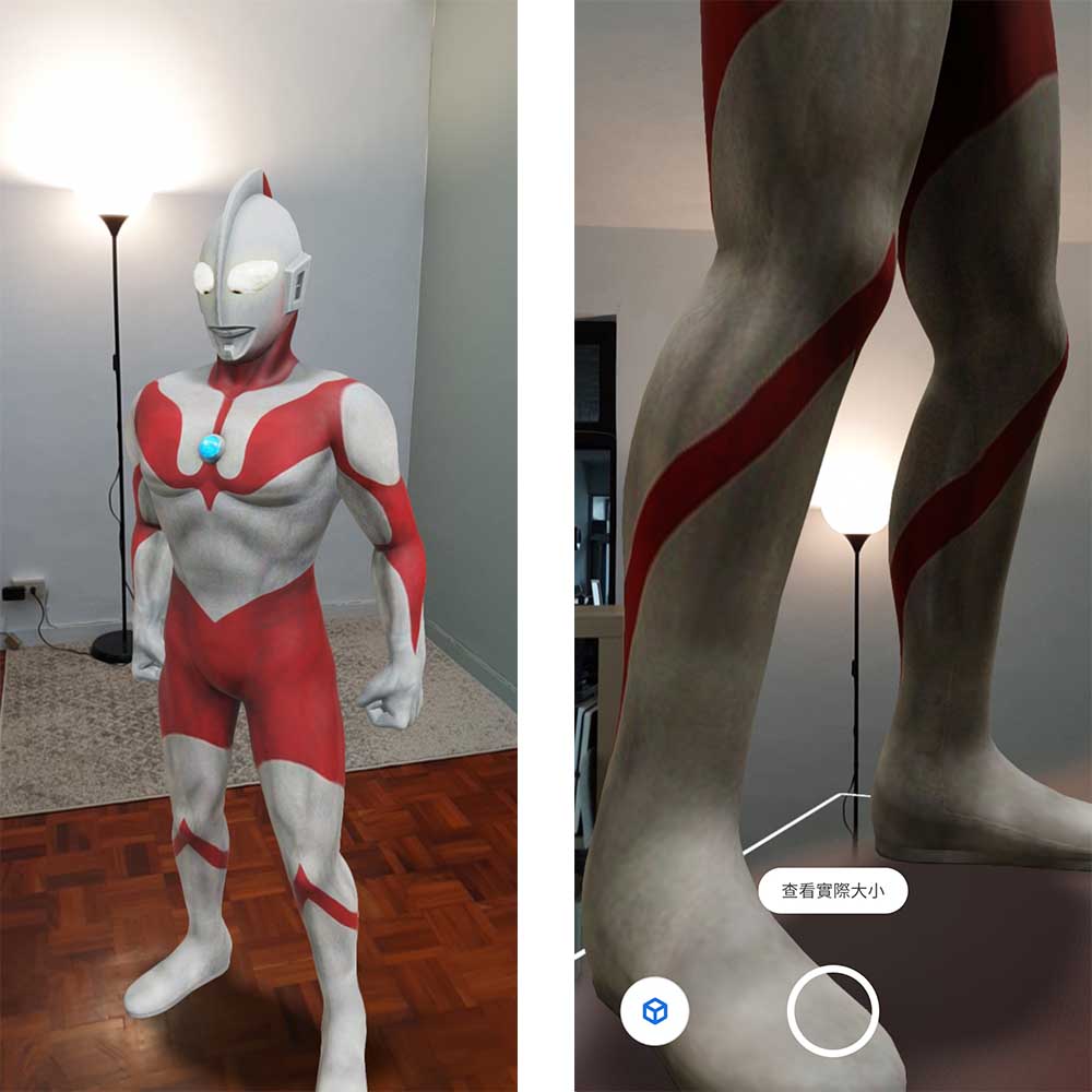▼ 雙指可調整模型大小,單指可移動模型,或者你也可以選擇以真實比例來呈現,譬如下方的超人力霸王。