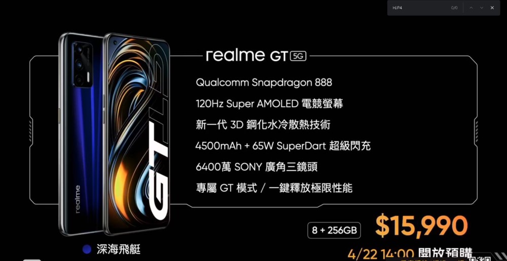 realme GT 5G 「深海飛艇」8GB +256GB 版本, 臺灣售價 15,990 元,今日下午兩點開放預購,4 月 30 日出貨。而另一款「曙光」版本發售消息會在日後另行公布。