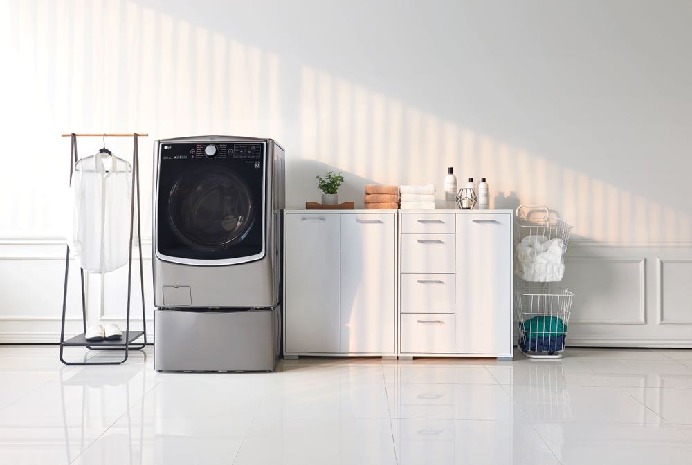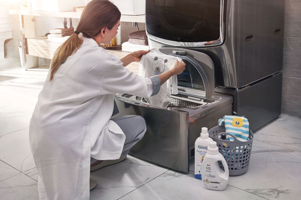 1. TWINWash 雙能洗洗衣機:獨創的「一部雙機」技術,上搭蒸氣滾筒洗衣機,下疊迷你洗衣機,可將衣物分開清洗,避免衣物之間交叉汙染,全系列滾筒洗衣機搭載獨家蒸氣洗衣技術,且上下雙機皆具備 40-60°C 溫熱水洗淨,達到 99.9%殺菌除螨。