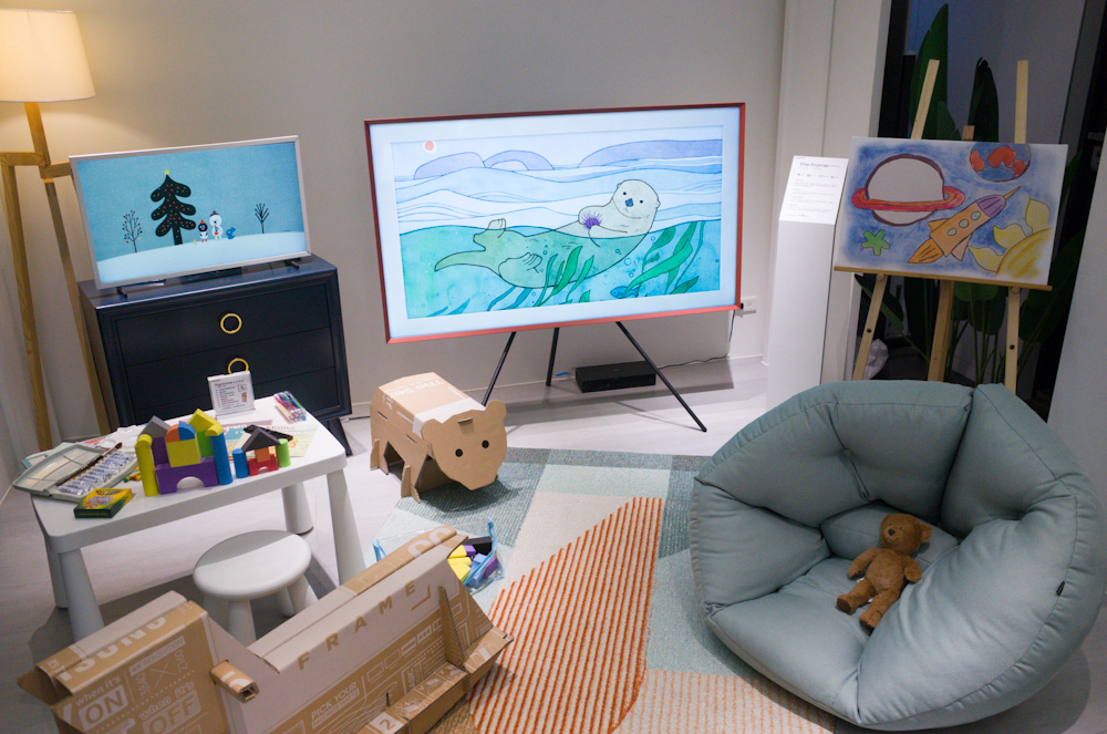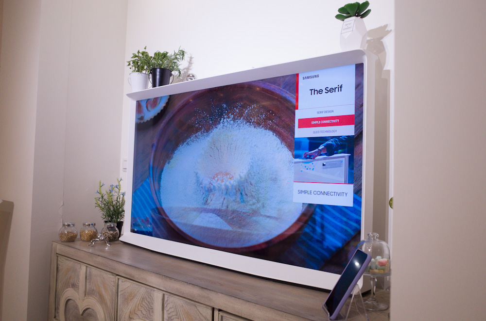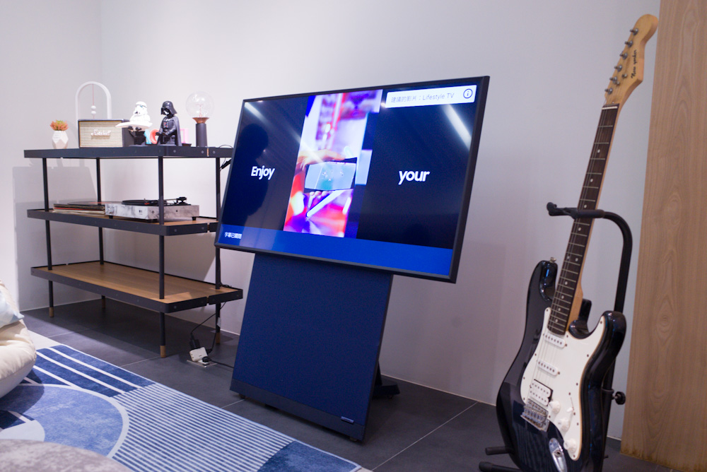 ▼ 現場也展示去年推出的 The Serif 風格電視,雖然今年沒有新的變化,但側看 I 字型設計至今看還是令人印象深刻,上方平坦的表面可以放上自己喜歡的公仔,打造自己喜愛的客廳風格。