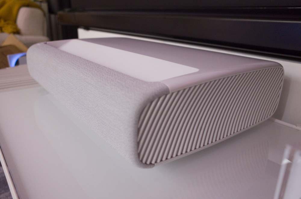 ▼ 針對聲音表現, The Premiere 超短焦雷射 4K 智慧電視內建 4.2 聲道 40 瓦總輸出,聲音是從本體兩側 44 個音孔發出。此外,純白設計的機身,其外型圓潤,三星還使用織物飾面烘托質感。