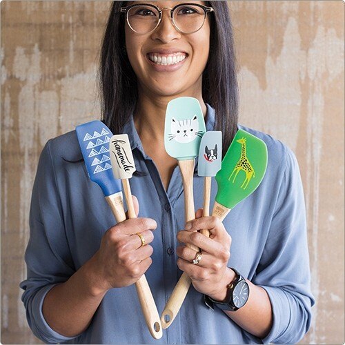 當小孩把圍裙穿好,站到自己砧板前的工作區後,這時候也能幫孩子們準備他們專用的料理工具。其實市面上也有專門為孩童設計的兒童菜刀,強調輕巧刀鋒鈍,但如果我們只是想要有著一起動手做的過程,或是並不放心讓他們使用刀具,我們也可以直接挑選類似刮刀類的產品。一來能夠應用在攪拌麵糊、醬料上,二來橡膠木握柄小孩也比較好拿握,就連樣式設計也相當的童趣,平常掛在廚房裡都好看!