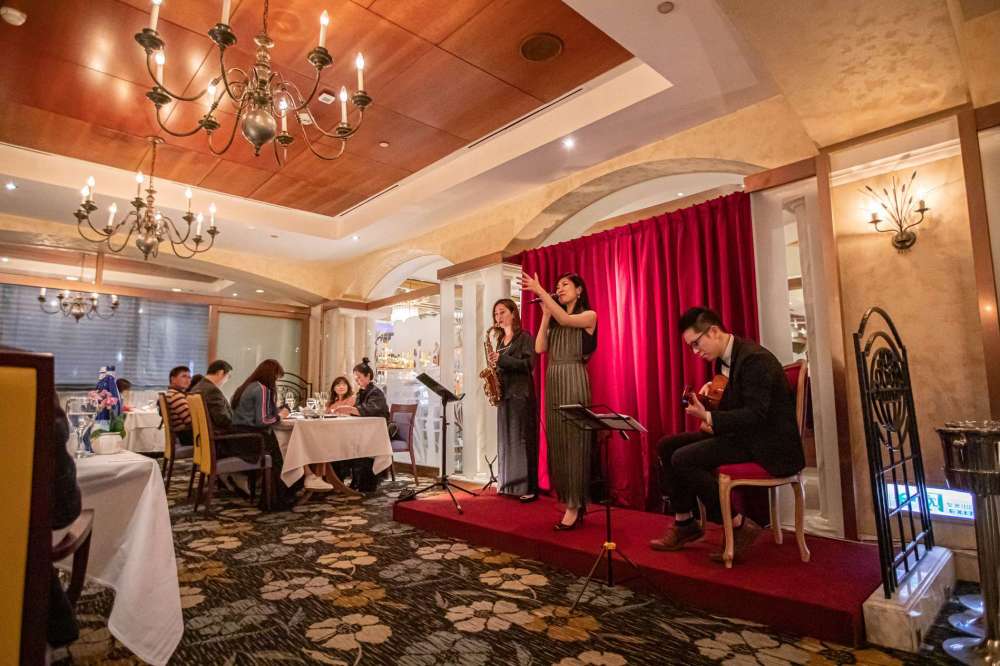 用餐時會搭配由女爵・騎士樂團主唱徐席琳與吉他手李芳旭,以及台灣首位自爵士樂發源地紐奧良留學歸國的爵士演奏家林映辰現場演奏爵士樂經典浪漫樂曲