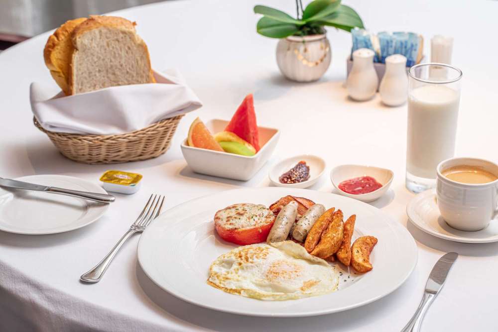 好好休息一整晚之後,隔天一早熊就直接到地中海牛排館這裡來拍攝早餐,沒想到七點一到就有其他客人一起進來用餐了!