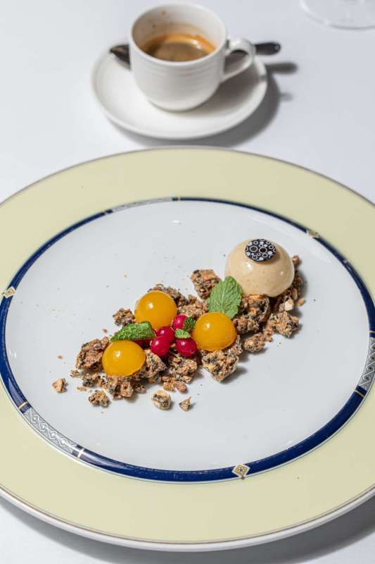 最後的壓軸,就是巴瑞芝麻脆餅/水果凍/檸檬白巧克力慕斯,再加上小茶點與現煮研磨咖啡或茶,熊依照慣例就是雙倍濃縮咖啡
