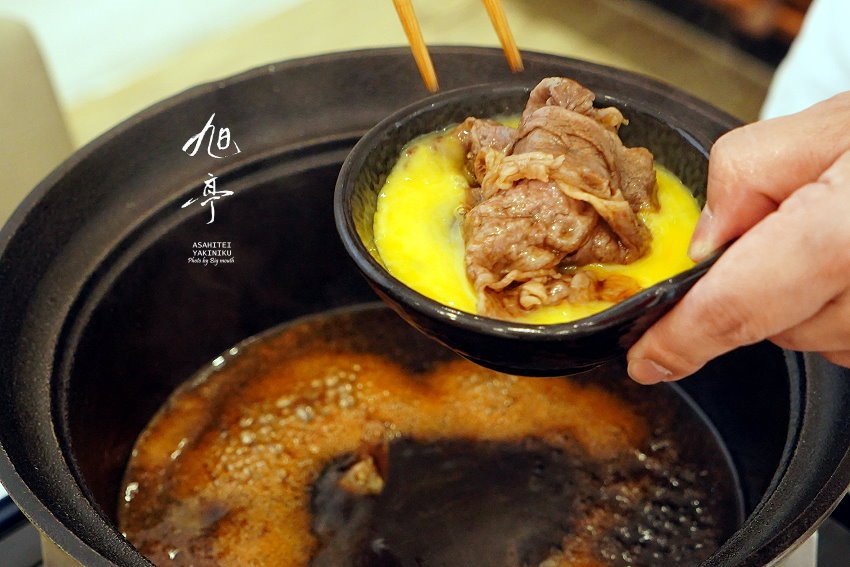 ▼起鍋後的和牛沙朗直接放入整顆生蛋打成的蛋液中享用,也是相當道地的日式吃法;服務人員刻意將蛋黃、蛋白不要打得這麼散,為了就是讓蛋黃可以跟和牛的油花融合在一起,蛋白則是增添滑口感,讓整體口感更加滑順!