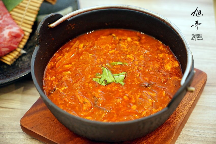 ▼大家或許不知道,其實日式燒肉曾受到韓國飲食文化的影響,所以某部分是很類似的,再以日本人的料理方式去重現,像這道辣湯泡飯就是一個例子,以昆布下去熬煮高湯,搭配自製泡菜、牛肉、香菇等配料下去製成,看起來紅通通的,但其實辣度不會很高!