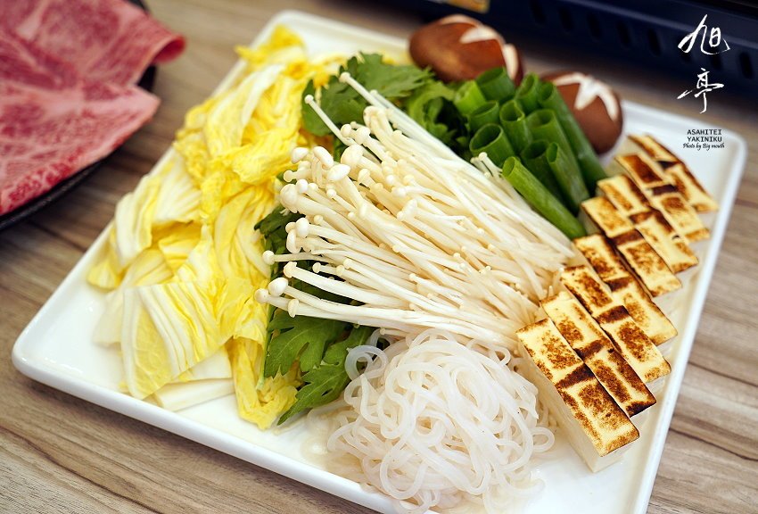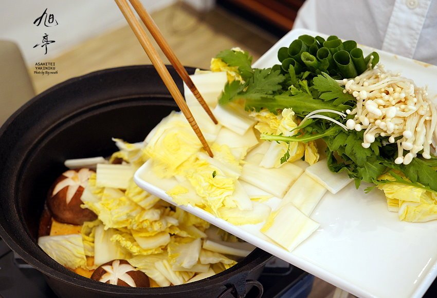 ▼簡單搭配幾樣蔬菜、菇類、蒟蒻麵、豆腐等食材,讓我們突然想到在日本飯店吃到的壽喜燒模樣,簡直如出一轍啊!