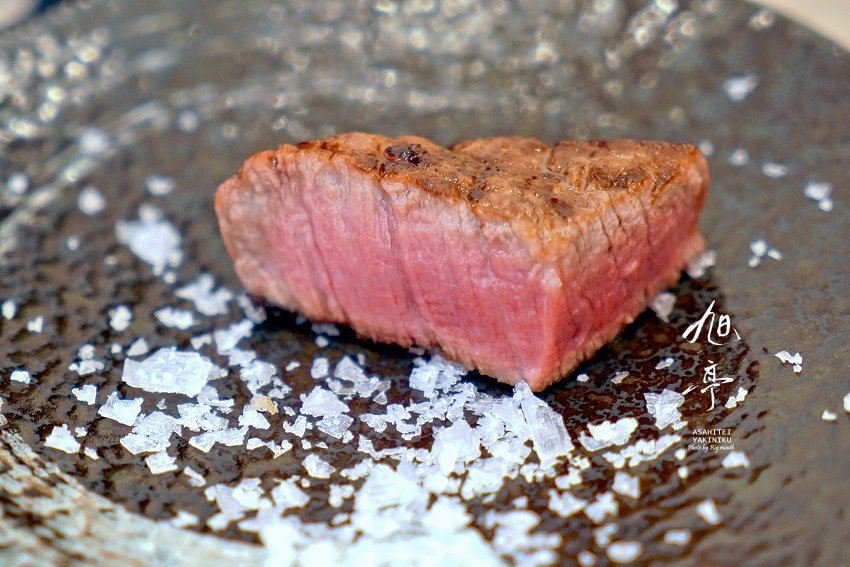 ▼第二次直接烤至七分熟再上桌,吃起來果不其然的豐盈、鮮甜,吃得到油花的香氣、嫩度,在嘴裡咀嚼起來的口感更是超級迷人,簡單搭配海鹽就很提味好吃!