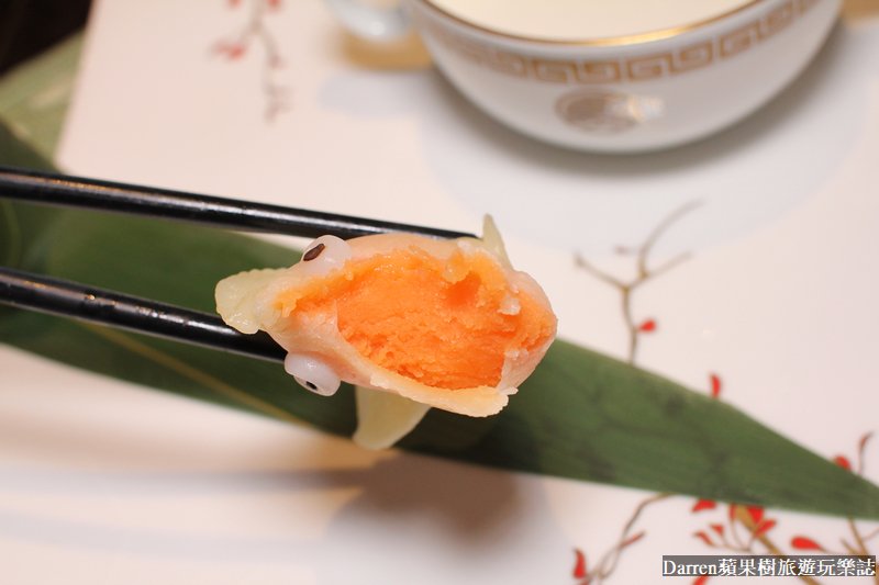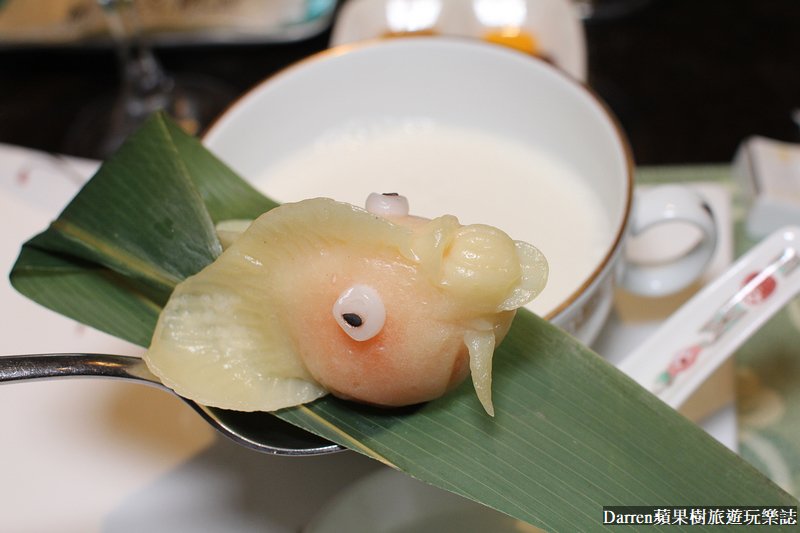 端上桌可愛的金魚餃立刻成為焦點,盤飾優美不小心給手機多吃幾張,使用南杏、北杏調和香氣濃郁,手工捏製的金魚餃可愛指數爆高,而且也很好吃唷