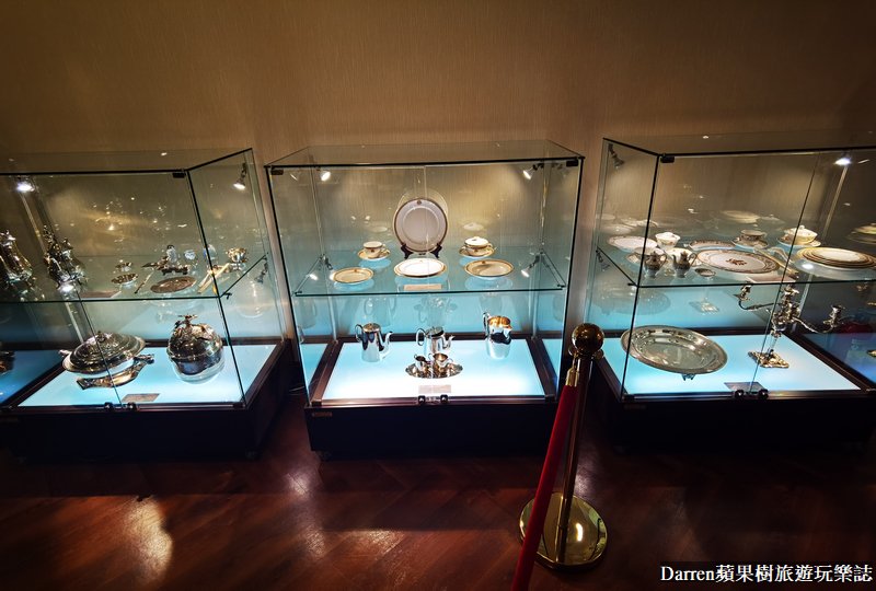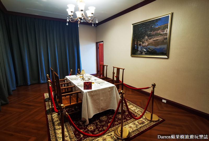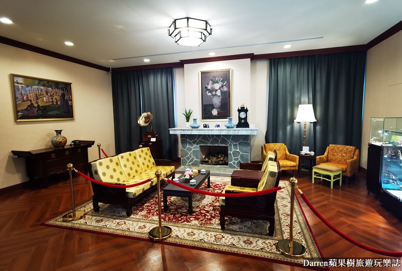 孔二小姐故居客廳,展示品還有珍貴的餐具、圓山飯店紀念酒、國宴菜單等等,透過導覽方式讓民眾可以更加瞭解整個文化背景