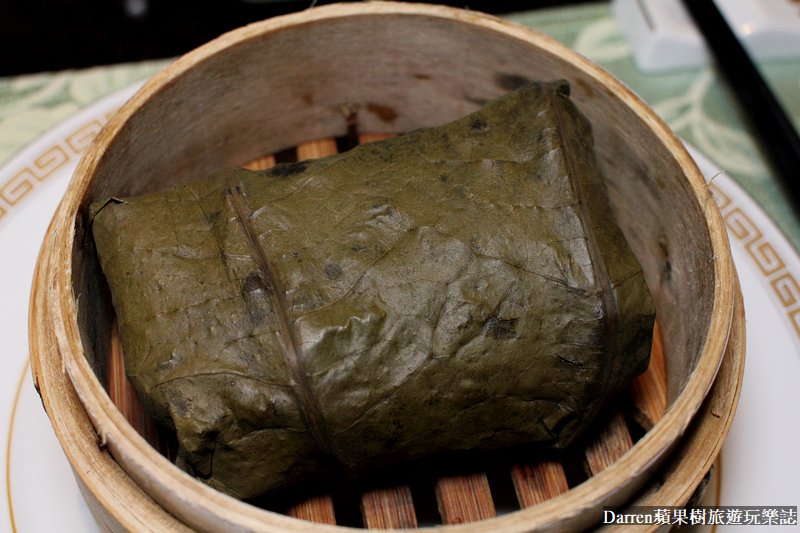 這年的總統就職國宴,強調結合在地食材,所以國宴主廚使用國產品,這道粵式經典料理,飄香荷葉飯打開荷葉散發出淡淡清香,米飯調味香鹹不軟爛