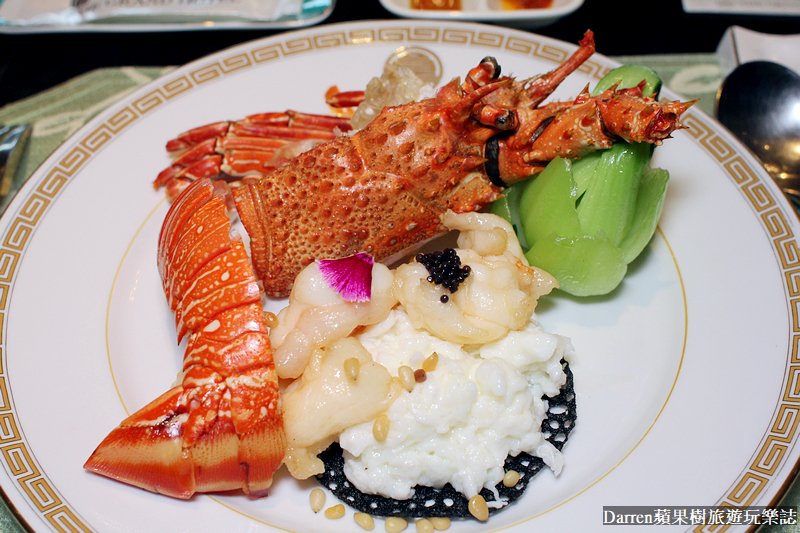 龍蝦搭配盤飾充滿喜氣,新鮮龍蝦肉甜脆鮮美,加上魚子醬增添鮮味的廣度,蝦肉搭配拌炒鮮奶的料理方式,吃起來濃郁醇香爽滑嫩口