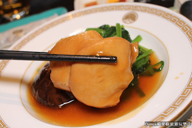 主廚以鮑脯為主角與蠔油的提味增鮮,鮑脯肉質緊實鮮嫩,一旁香菇肥厚多汁,脆口鮑脯加綿實的香菇交錯享用的口感非常有趣,也讓料理不會太過單調