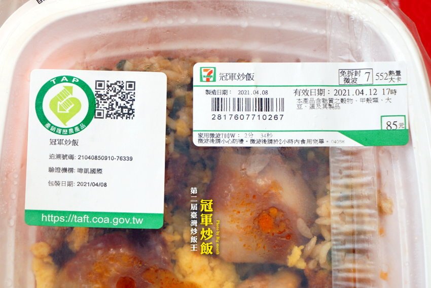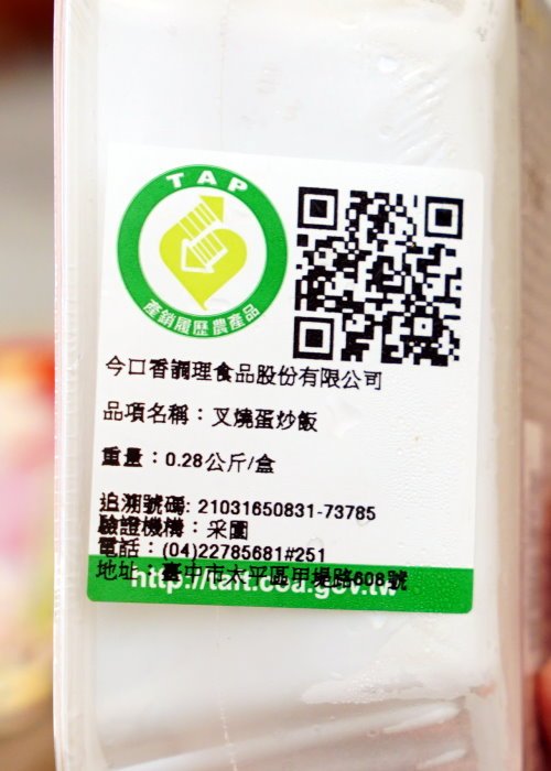 ▼「參巴醬雞肉炒飯」採用透明包材,更能清楚看見裡頭的內容物!上頭也有詳細的標示與TAP產銷履歷農產品標章,有興趣的朋友也可以掃描QR Code來追蹤!