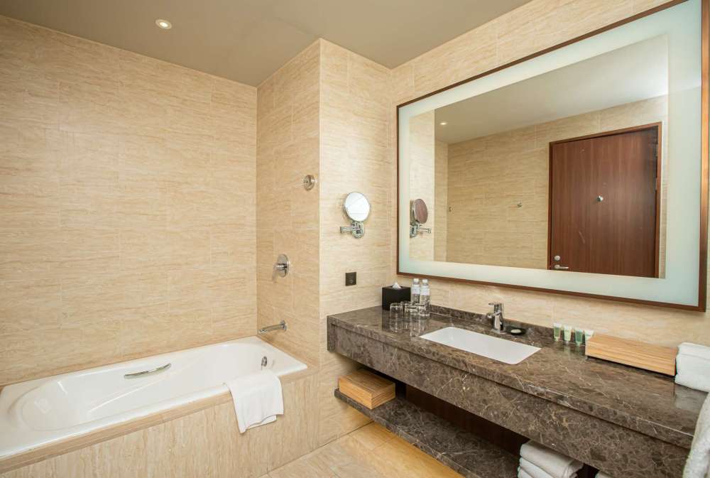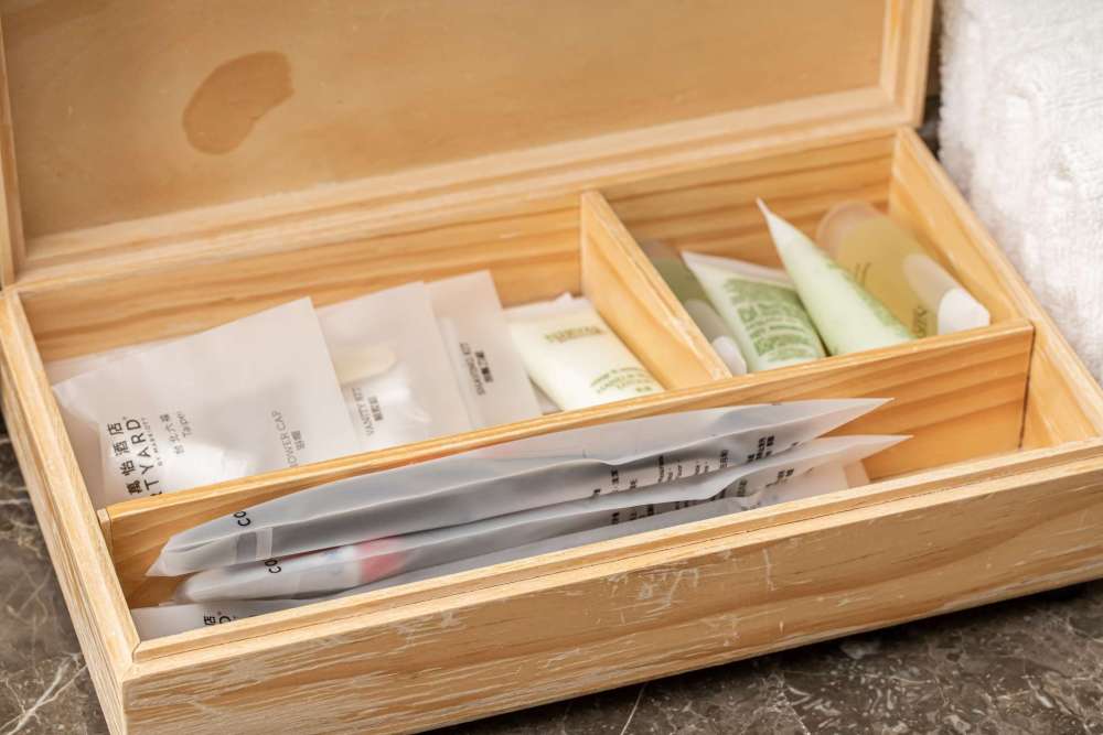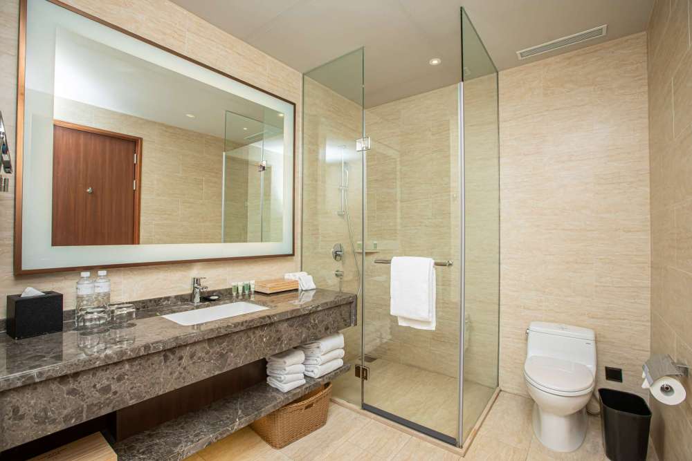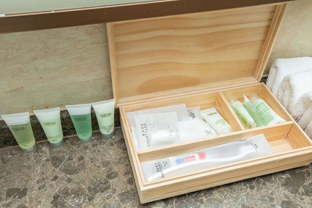 接著,浴室的備品部分是六福萬怡自家的選品,再搭配萬豪體系常見的NIRVAE,也算是屬於標準版搭配