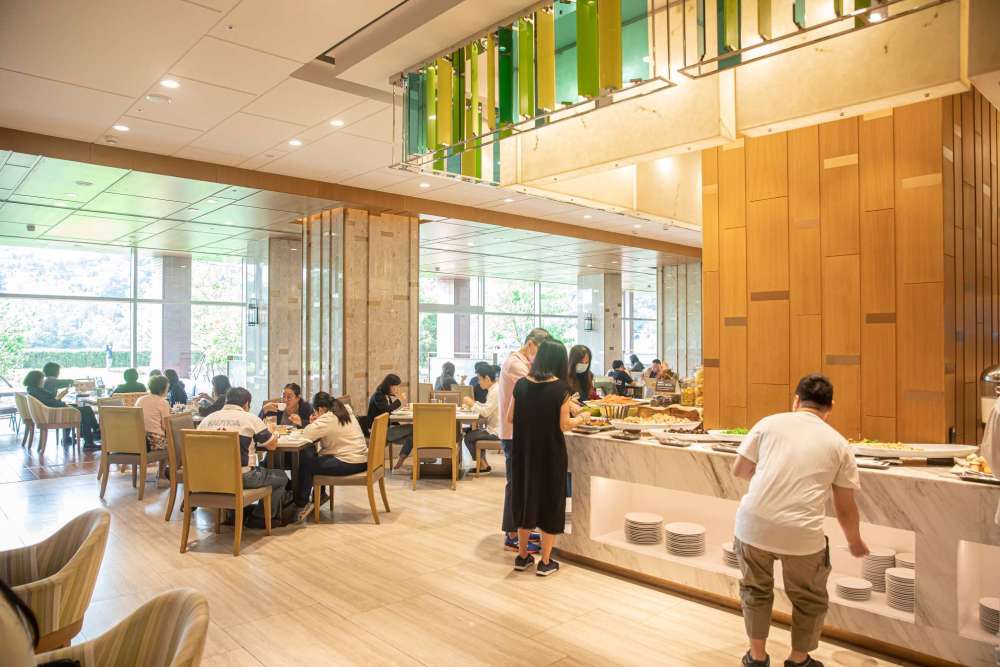 睡了一夜,隔天的早餐就是六福萬怡的敘日自助餐廳,一大早人潮就不少,看來住房率狀態依舊不錯