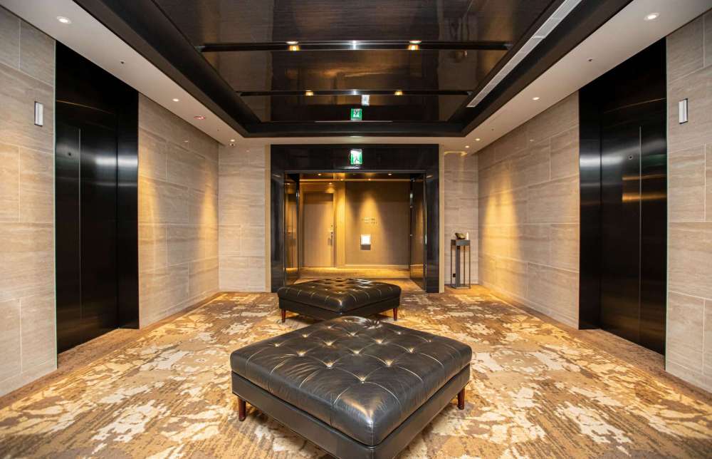從南港轉運站B棟一樓,就可以看到六福萬怡的電梯,搭上七樓就能看到飯店的透亮大廳