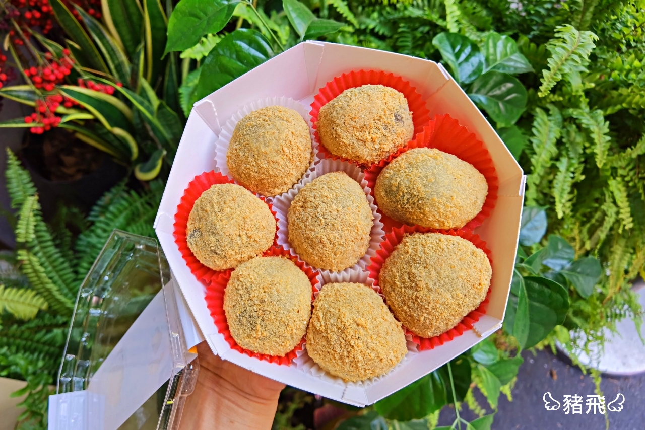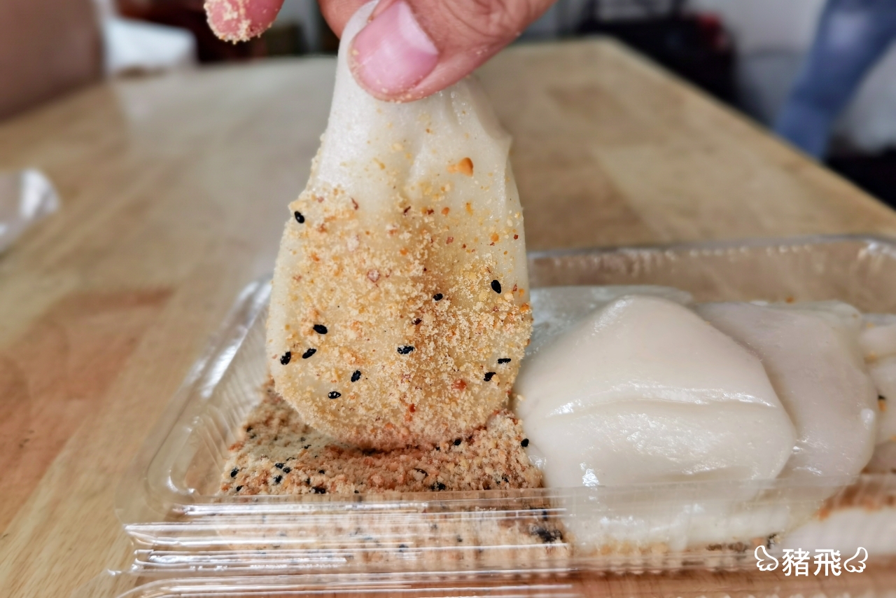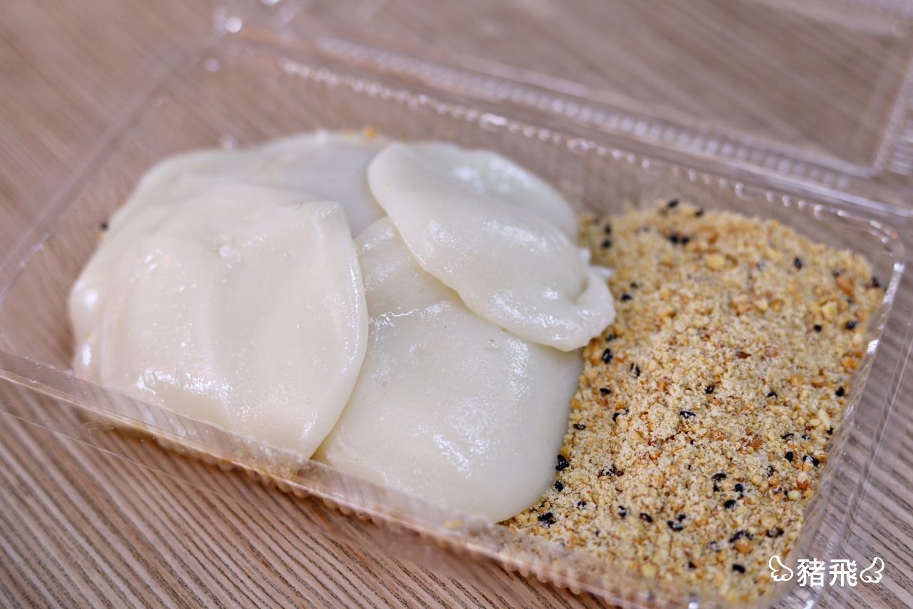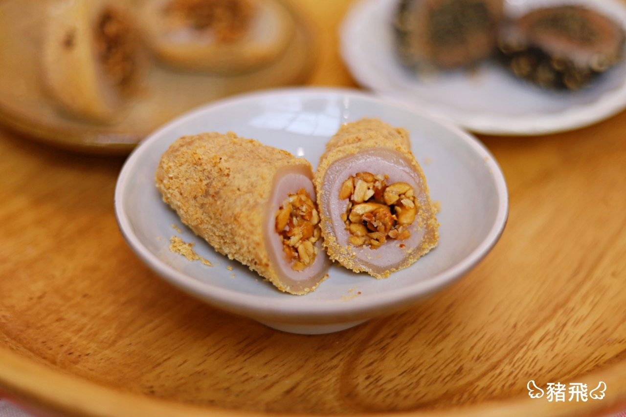 很推薦古早味鹹麻糬,是豬飛喜歡的口味!用新鮮香菇、珍珠菜脯拌炒後散發迷人香氣,就是記憶中的古早味。甜口味有一款很獨特的芋香花生麻糬,選用綿密的芋泥包裹花生顆粒,吃起來軟嫩中有花生粒的嚼勁,風味獨特也值得一試。