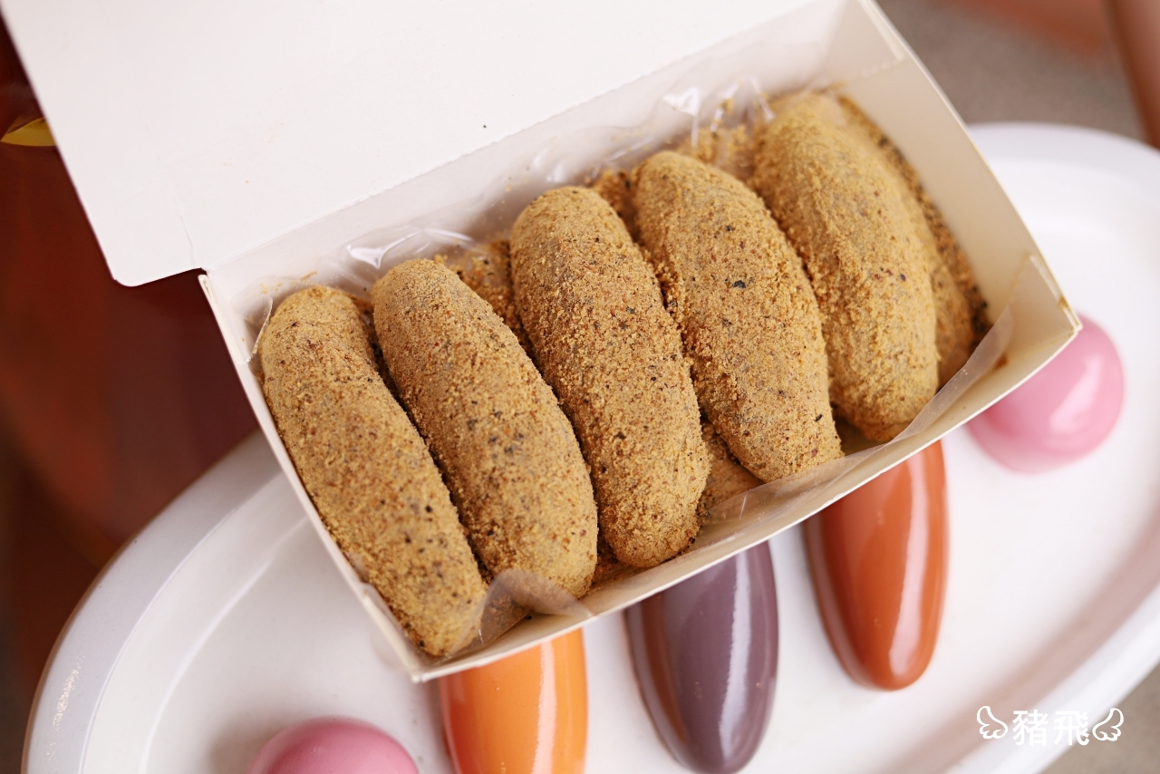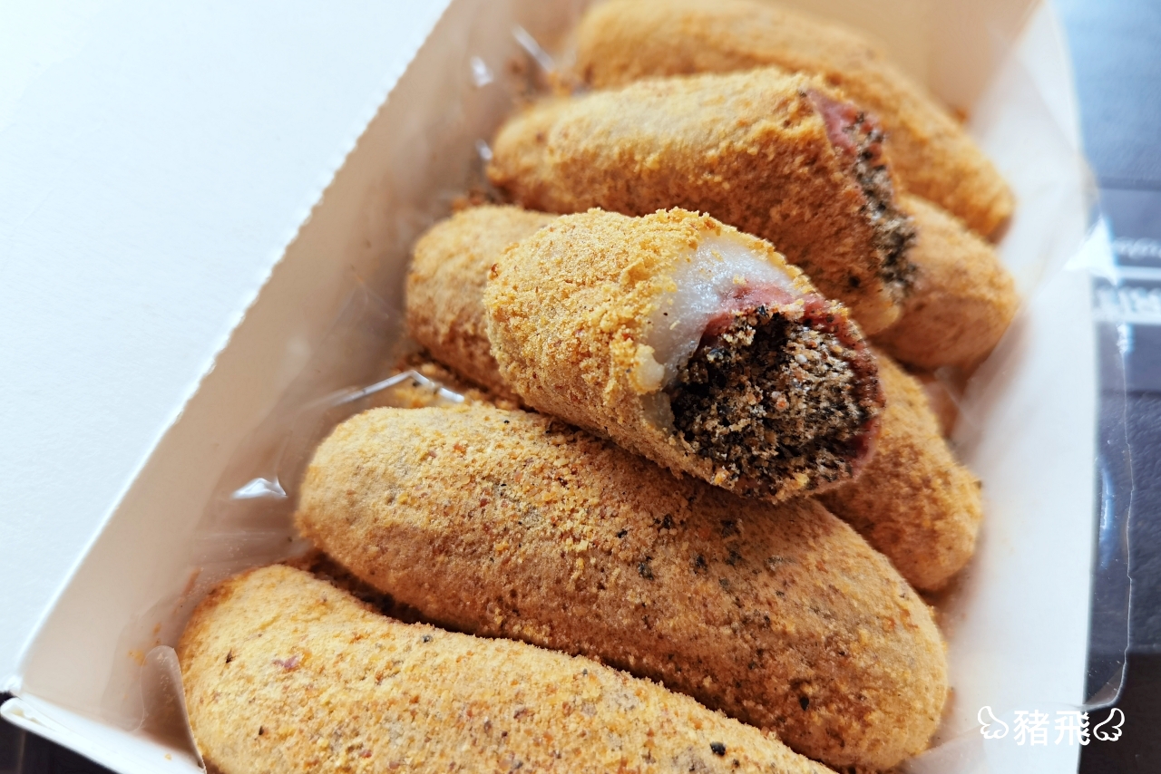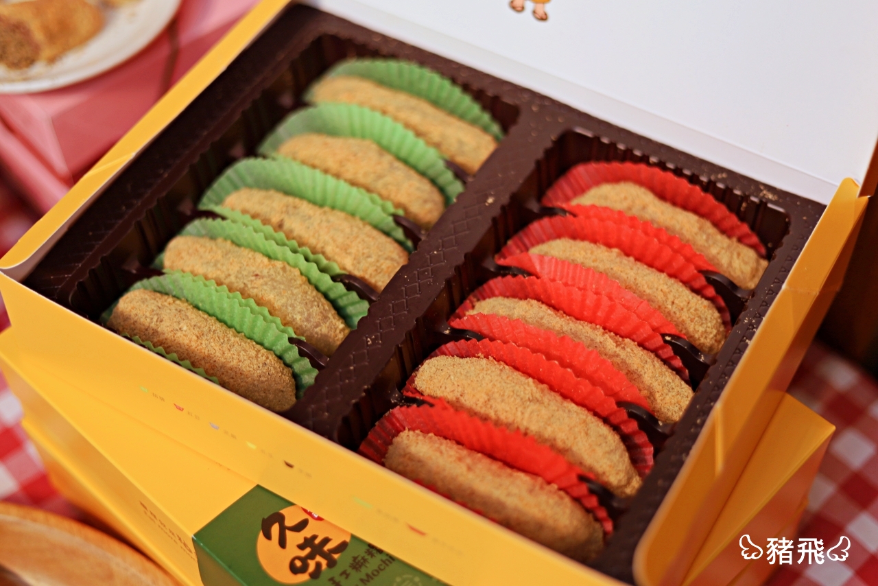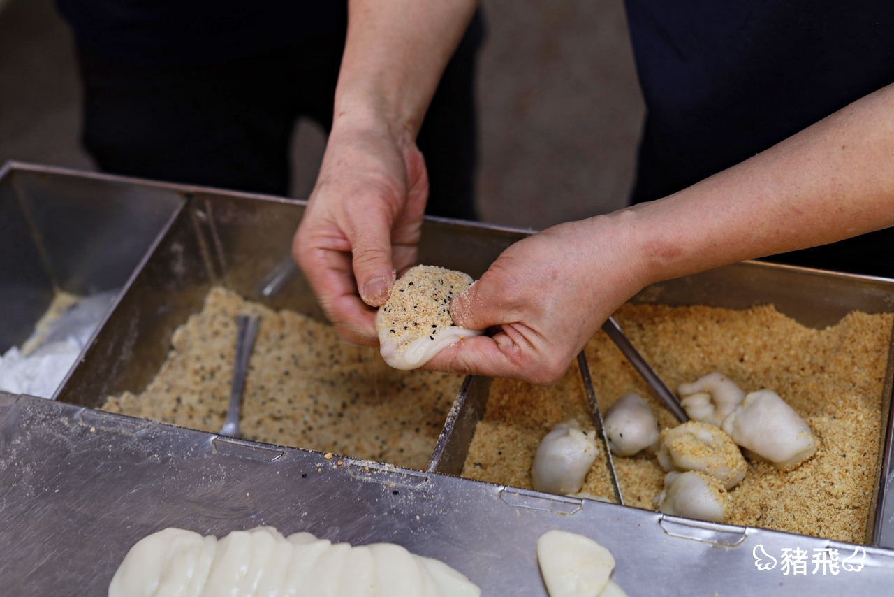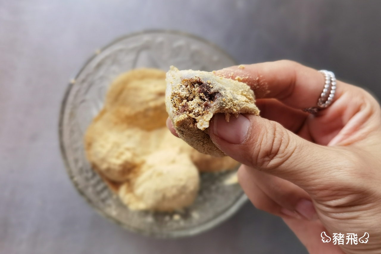很推薦古早味鹹麻糬,是豬飛喜歡的口味!用新鮮香菇、珍珠菜脯拌炒後散發迷人香氣,就是記憶中的古早味。甜口味有一款很獨特的芋香花生麻糬,選用綿密的芋泥包裹花生顆粒,吃起來軟嫩中有花生粒的嚼勁,風味獨特也值得一試。