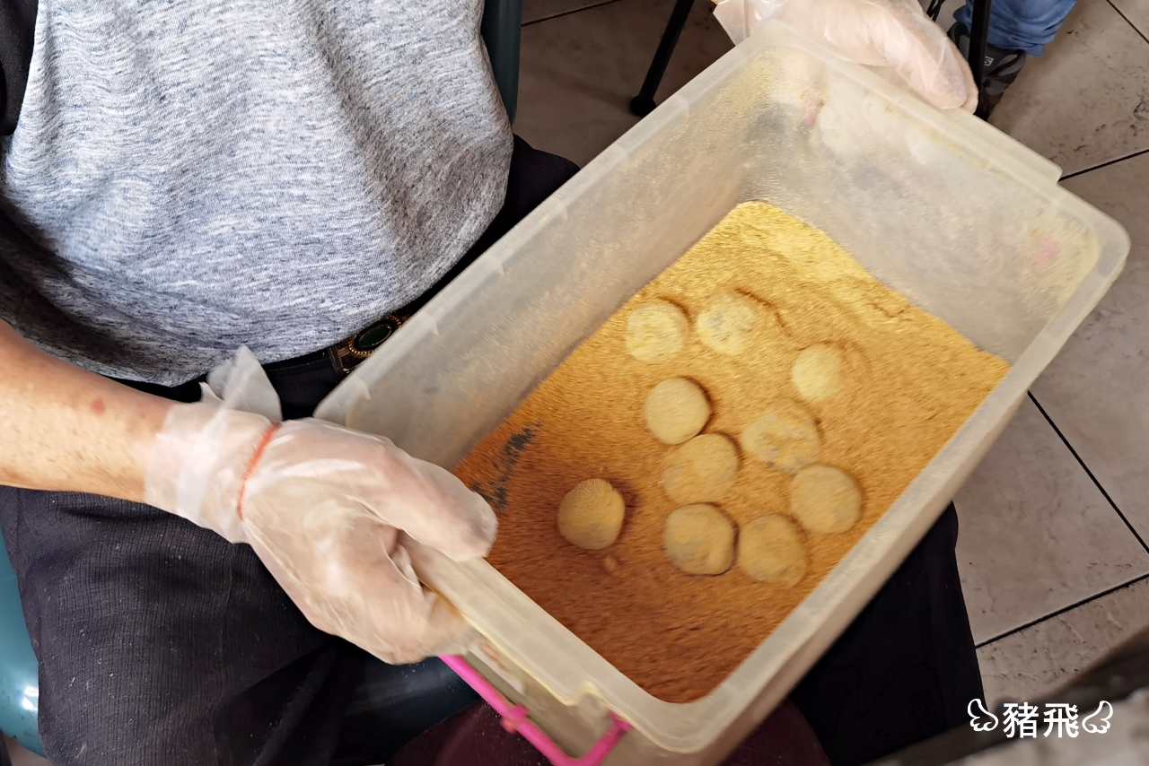 ▲包好餡料的麻糬在花生粉裡滾啊滾,撲鼻而來的花生粉香氣讓人口水直流。