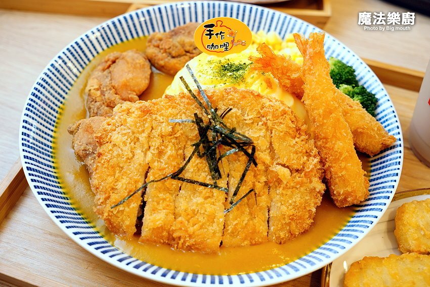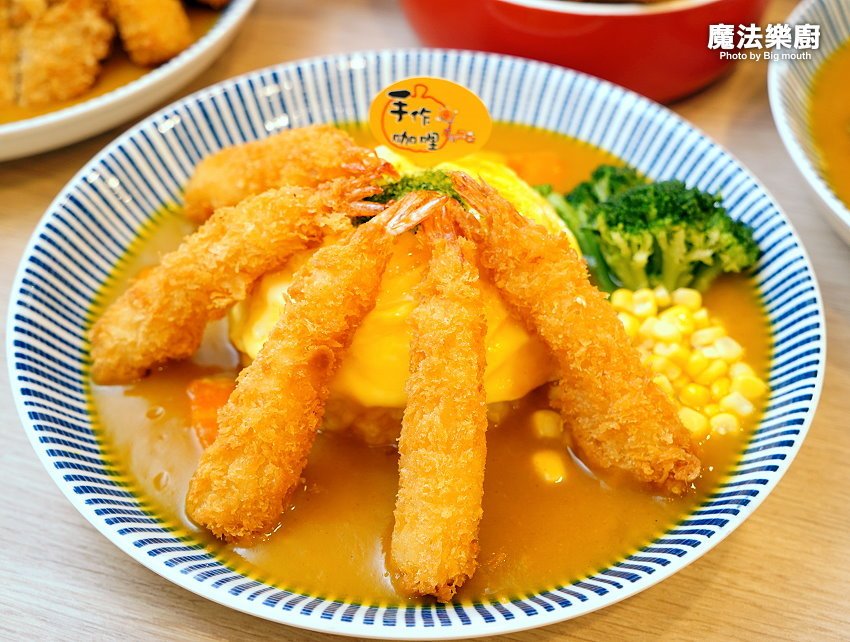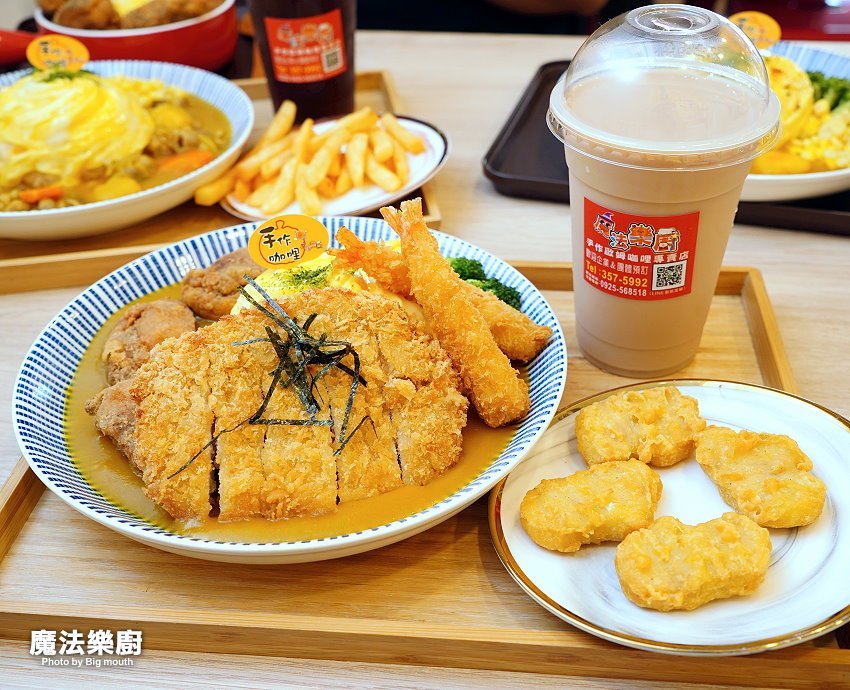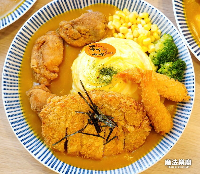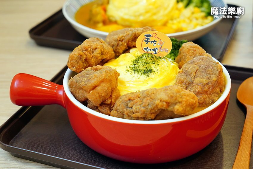 桃園美食越來越多了,位於桃園區大業路一段上的「魔法樂廚手作歐姆咖哩專門店」,原本開在南平黃昏市場附近,是以外帶、外送為主的攤車;後來搬到我們家附近,不僅內用座位區更多,而且不收服務費,價格同樣佛心,最低只要95元就能吃到咖哩飯,真的很超值!他們家的咖哩飯採用當季蔬果打成泥後再加入咖哩熬煮,吃起來濃郁又清甜,就算天天吃也沒問題~~還有客人遠從大溪、八德特地開車來吃,而且連小朋友都超愛,不難看出他們家的咖哩飯有多受歡迎啊!其中我們最愛的就是放了六大塊炸雞的唐揚炸雞咖哩飯及大份量的大野狼海陸咖哩拼盤,就能一口氣吃到炸雞、豬排及炸蝦三種主餐,整個飽足又滿足啊(嗝)!!