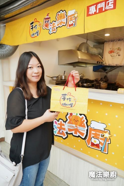 ▼「魔法樂廚手作歐姆咖哩專門店」就位於桃園區大業路一段上、靠近大興路這一側,黃紅交錯的扛棒加上討喜的圖案,每回經過都忍不住多看幾眼!門口擺的就是之前專做外帶、外送的小攤車,也是最好的紀念啊!