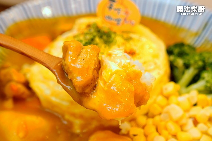 ▼柔滑香嫩的歐姆蛋相當討喜,簡單搭配咖哩飯就很順口好吃!喜歡吃辣的朋友也可以自行加點七味粉或辣椒醬,就能吃得更過癮啦!