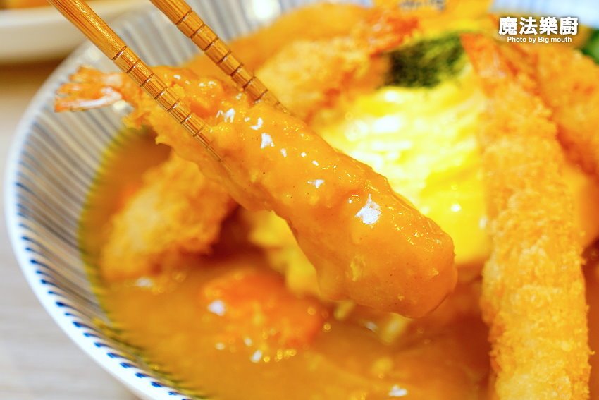 ▼他們家的炸蝦採用白蝦搭配酥脆麵衣,吃起來既有白蝦的Q彈鮮美,沾附咖哩醬更多了一股濃郁甜美的味蕾,讓人一口接一口停不下來!
