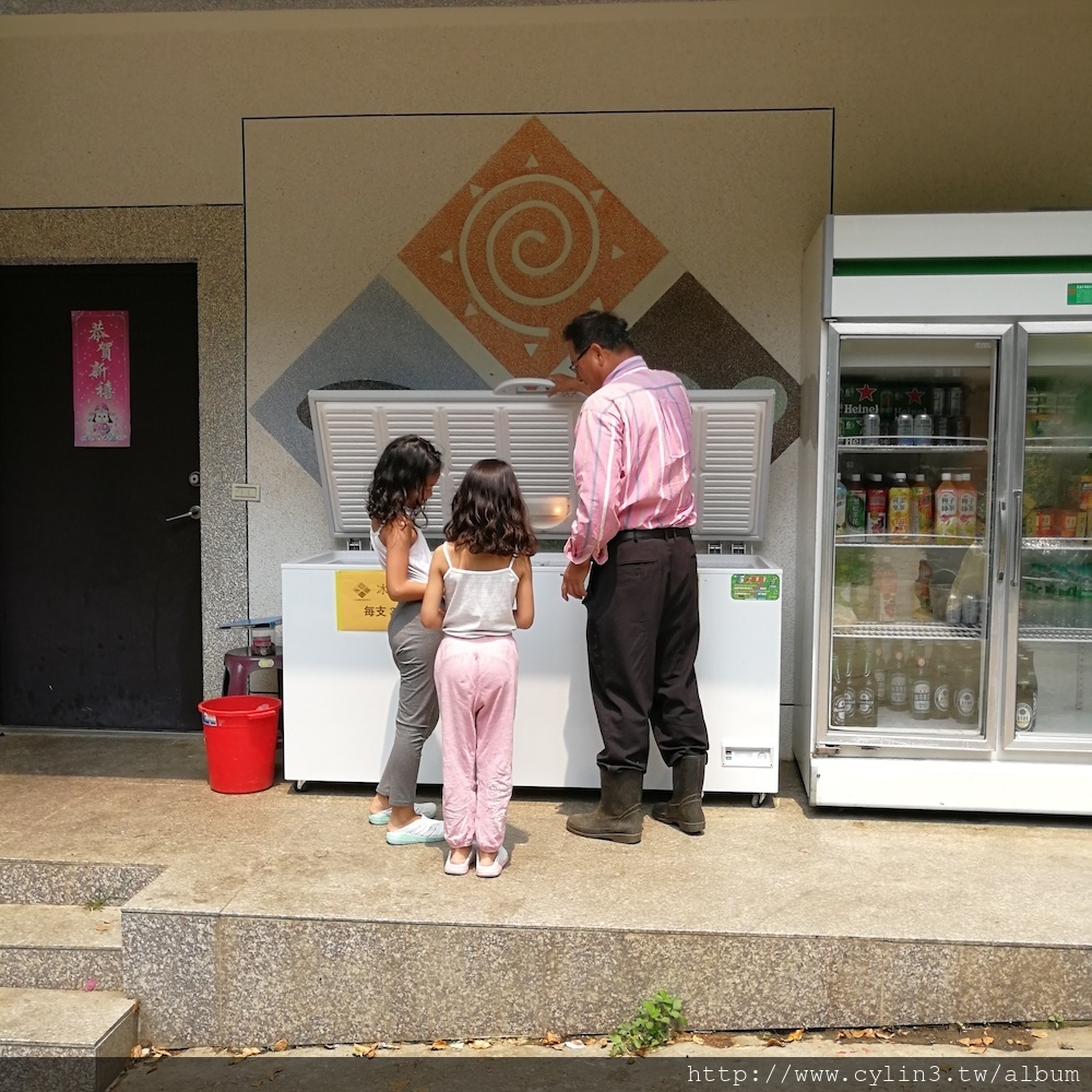 「土牧驛健康農莊」營本部目前對面有個小小販售部,販賣飲料與冰棒,發現租用的露營燈沒附大顆電池也趕緊來這兒求援購買;巧遇小朋友來挑選冰棒,覺得可愛,忍不住拍下一張,好像小時候去柑仔店買冰的情境啊~