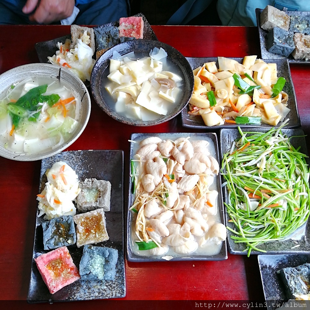 我們挑了一家「老街牛肉麵館(三色臭豆腐)」進行用餐,每個人都點了「招牌三色豆腐」,黑、黃、紅三個不同顏色的脆皮臭豆腐果然很吸睛,滋味也不錯,外脆內軟,沒有很臭,但味道很清爽順口,桂竹筍當季,我們分別點了炒的與煮湯的來嚐嚐,還不錯,但最讓我驚豔的是「薑絲炒大腸」,大腸處理得非常乾淨沒有異味,鮮嫩可口,酸味很自然溫和,沒有嗆鼻的化工醋味,大推大家來訪可以點來嚐嚐喔~