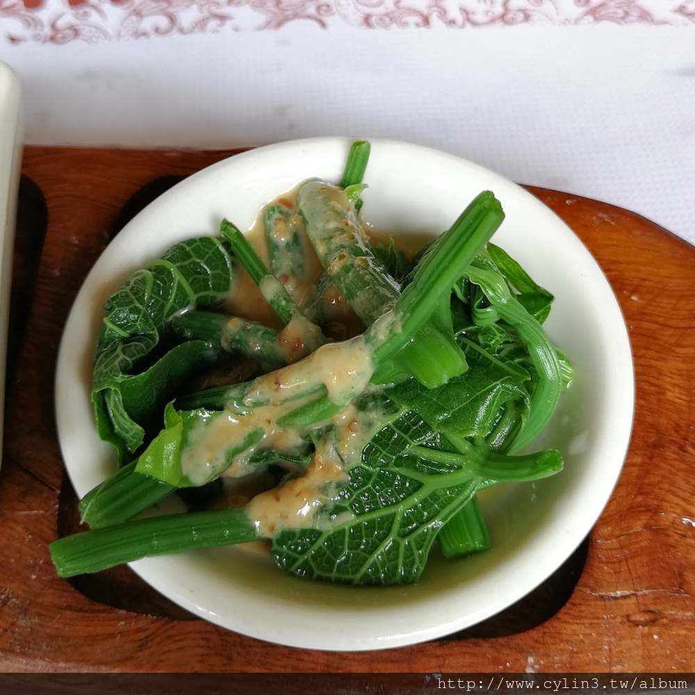 龍鬚菜:龍鬚菜佐胡麻醬,簡單調味清爽香甜。