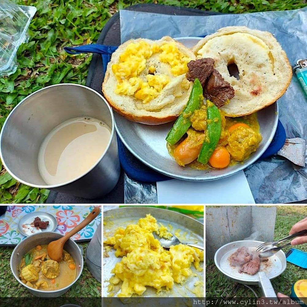 大夥又分工合作,泡咖啡、煮奶茶、炒蛋、煎牛排、熱咖哩雞…吃完豐富的貝果早餐,各自悠閒去~