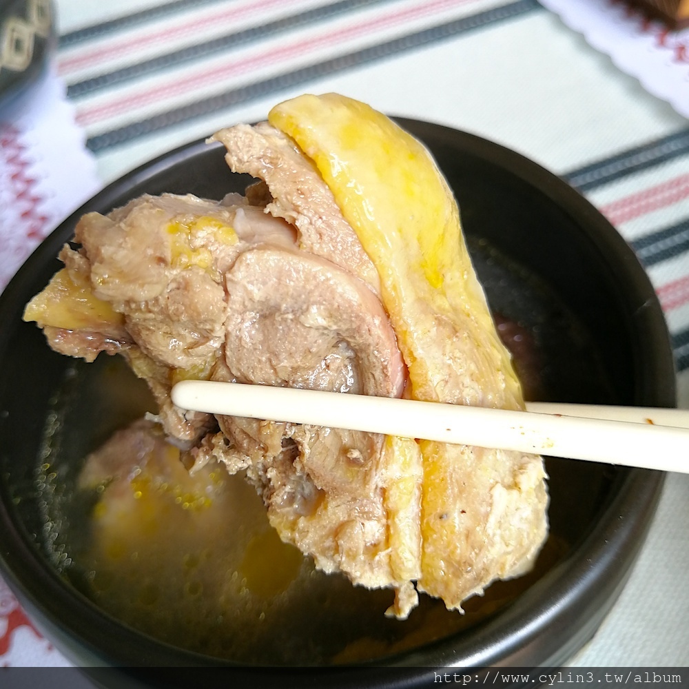 黃大嫂特別精選大朵段木香菇與放山土雞熬煮,僅以鹽巴簡單調味,但整碗湯卻香氣四溢,令人口水直流,風味十分迷人,雞肉部分鮮嫩不乾柴,Q彈美味,整婉熱呼呼的香菇雞湯也把我們身心都暖呼呼起來了。