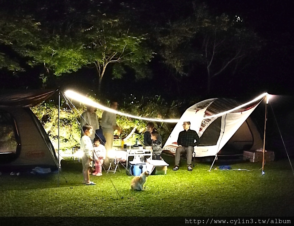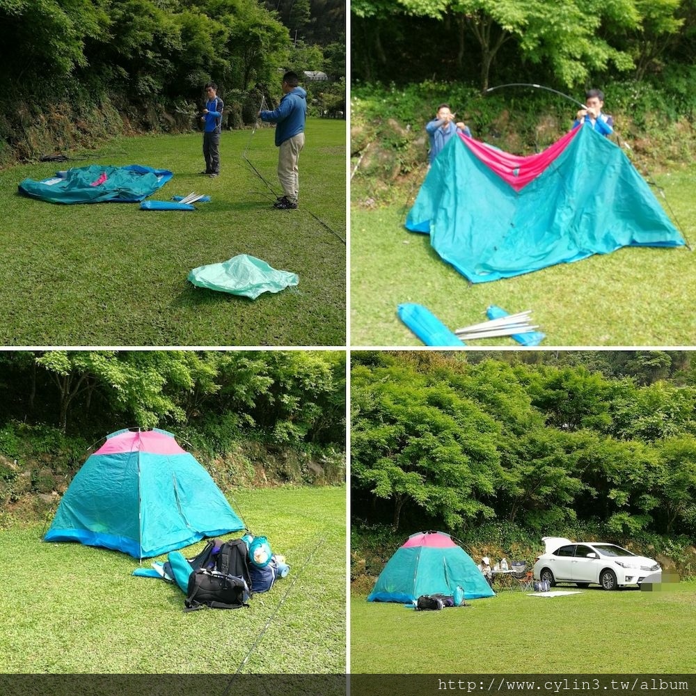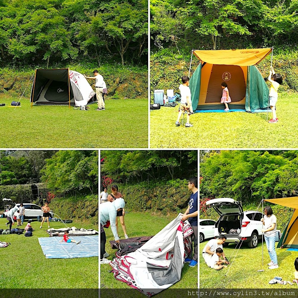 同行莉莉安與其友人手忙腳亂,加上小朋友湊熱鬧越幫越忙的樂趣下,也慢慢把小窩蓋好了;雖然這幾年露營流行快速帳篷或是莊園已經幫你蓋好,但我覺得自己搭建帳篷,全家大小一起蓋小窩才能享受真正享受露營的原始樂趣,小朋友也會有幫忙的成就感,更拉近親子關係。