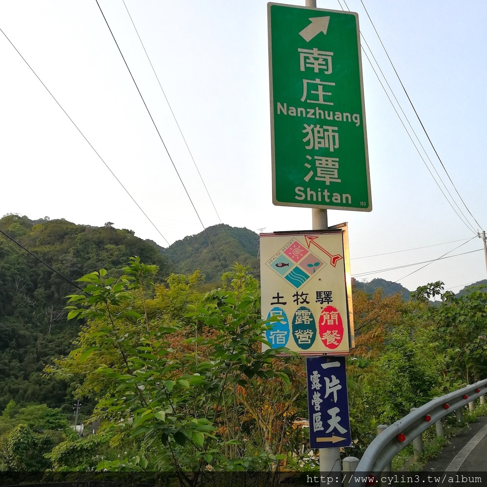 約開20分鐘後看到這路標「土牧驛健康農莊」往左,往右則是至「南庄獅潭」。
