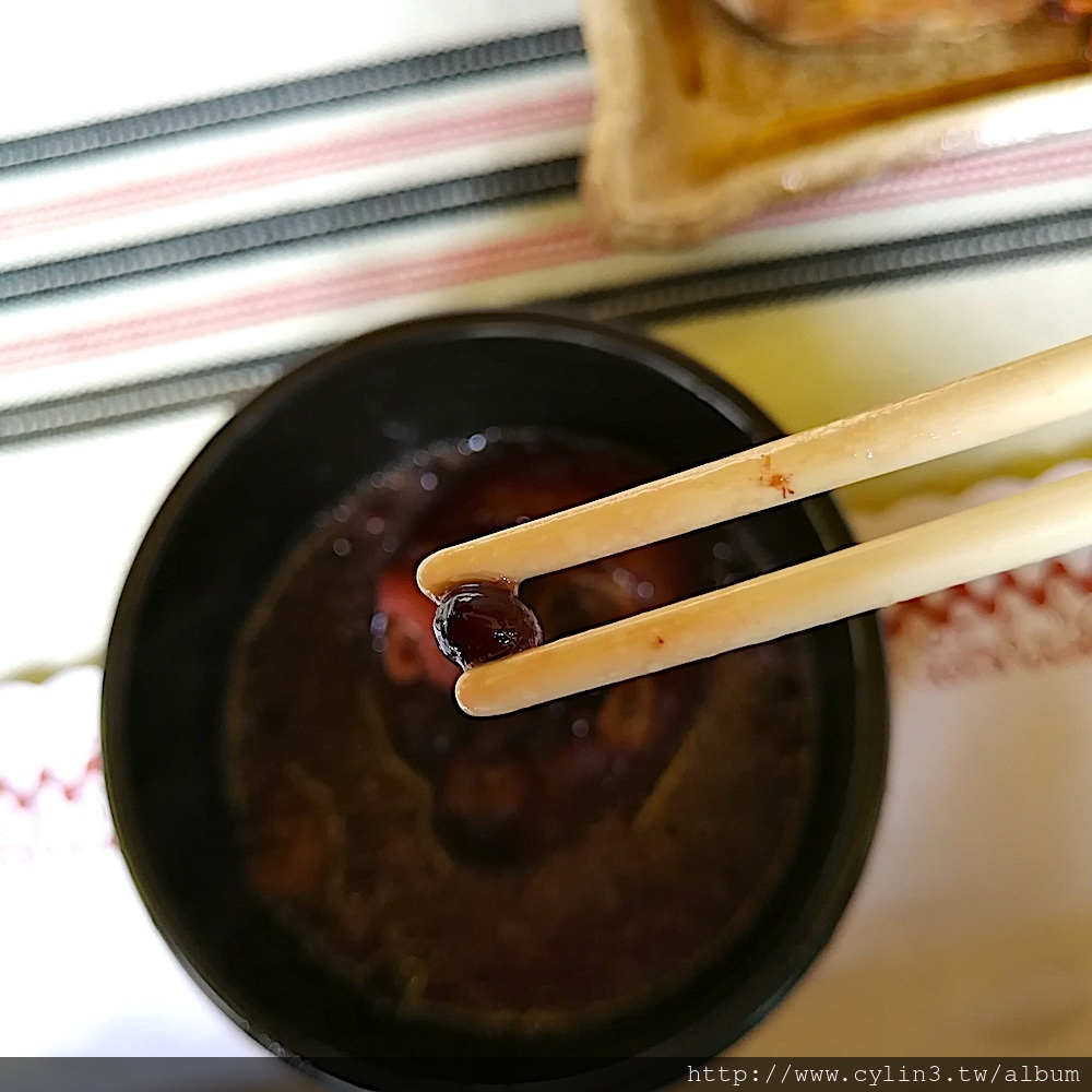 樹豆是泰雅部落的傳統美食,黑樹豆數量較少更珍貴,營養價值也更高,與豬腳一起燉煮,被視為是男人的天然「威而鋼」,因為以前部落交通不便,食材取得不易,只有節慶和宴請貴賓才有機會吃得到這珍饈喔~第一次吃樹豆的我,覺得口感頗像紅豆,夾起來感覺還硬硬的,沒想到咬下去卻是鬆軟清甜,熬煮燉爛的豬腳入口即化,QQ的皮膠原蛋白精華也都釋出融入湯內,這碗也是美容聖品哩~