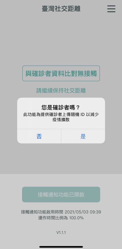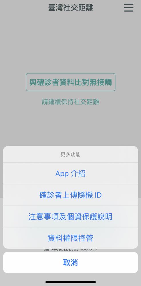 「台灣社交距離」app 的右上方有進階選項,其中「確診者上傳隨機 ID」 就是讓確診者能夠自主性的進行通報。也就是說加入的人越多,確診者越主動通報,「台灣社交距離」app 的提醒成效也會越明顯。