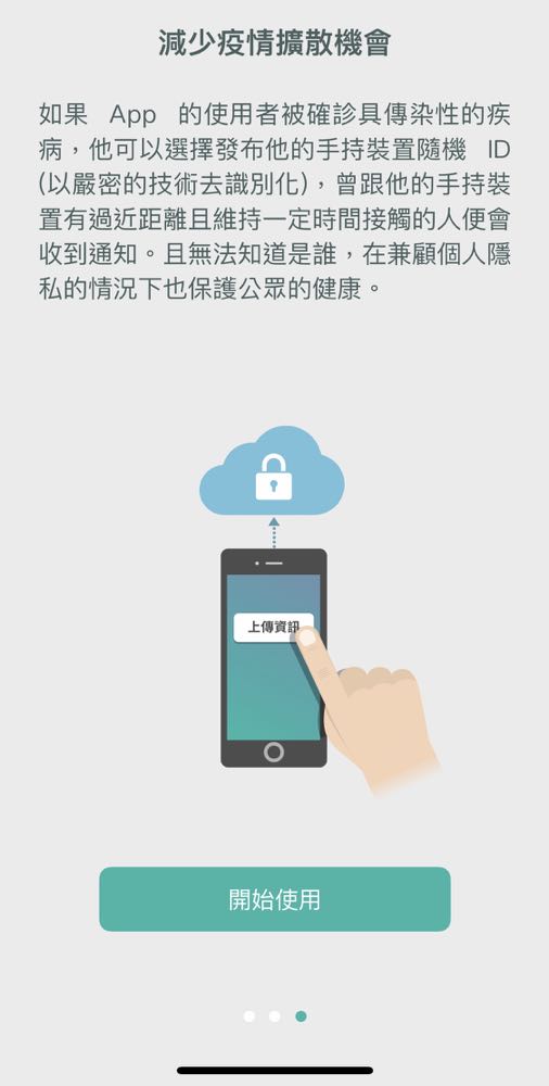 首先用戶可以從 Google Play 與 App Store 上下載,然後選擇「開始使用」,再開啟「開啟接觸通知功能」,就會安全地搜集附近曾經暴露過在 COVID-19 環境下的裝置的隨機識別碼,來與自己的所在位置進行交叉比對後進行提醒通知。