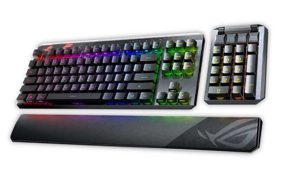 華碩近期推出兩款電競新品,從機械軸升級至 ROG RX 光學軸的 ROG Claymore II 電競鍵盤,以及可更換微動開關插槽 II 的 ROG Gladius III 系列電競滑鼠。其中 ROG Claymore II 除了本體 80% 鍵盤外,還額外提供可拆式數字鍵設計,使用上更加靈活。