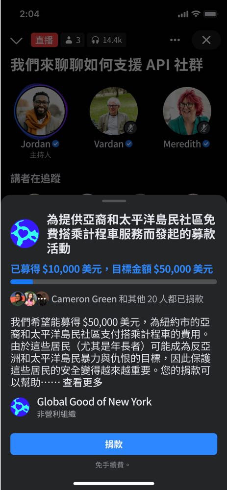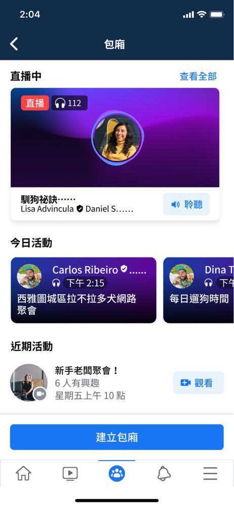 - 現場廣播包廂:在 Facebook 上可輕鬆探索即時的社群語音體驗,公眾人物及創作者可主持「現場廣播包廂」,與他們的朋友和粉絲即時對話、接觸到更多聽眾,未來更可營利或號召募款。